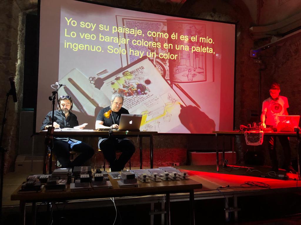 Después de la ruta, todos los participantes se reúnen en un micro abierto en la Escola Massana, amenizado con música para compartir tanto los dibujos como los escritos creados.