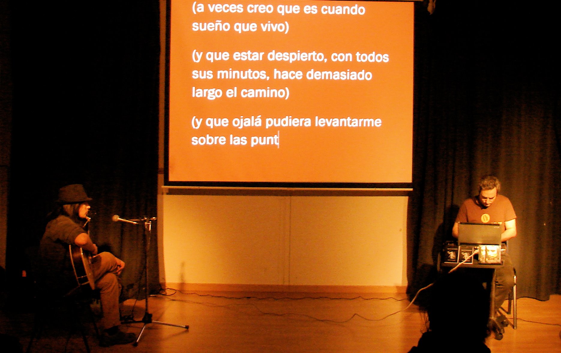 Marcos se considera también ‘TextJockey‘, un concepto apenas existente y que consiste en ofrecer sesiones de escrito-lectura con un fuerte componente VJ y DJ.